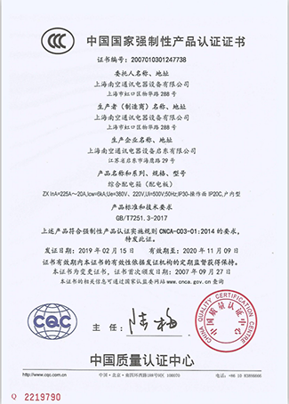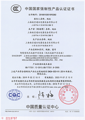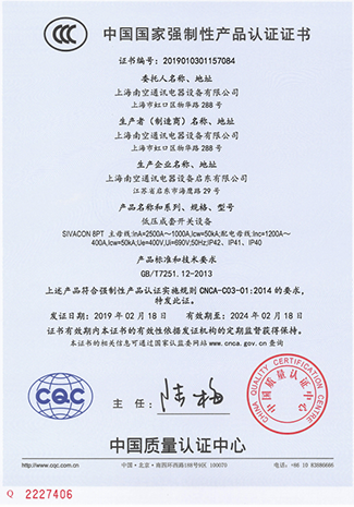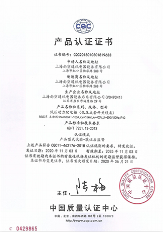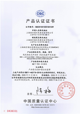 | CQC国家强制性认证证书MNS (2500~1000A) |