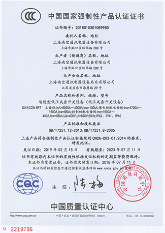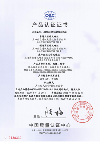 CQC国家强制性认证证书MNS (6300~4000A) |