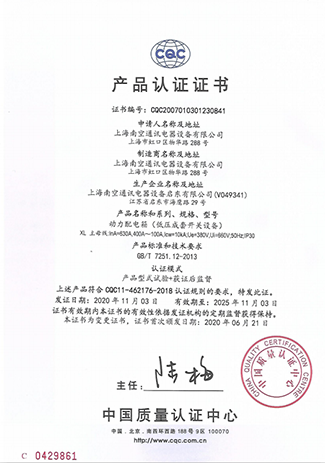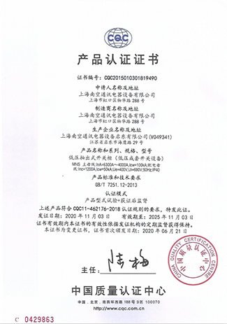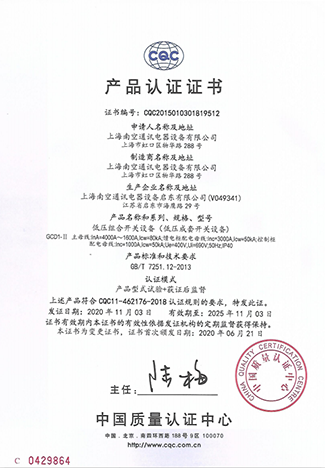 CQC国家强制性认证证书GCD1-II (4000~1600A) |
